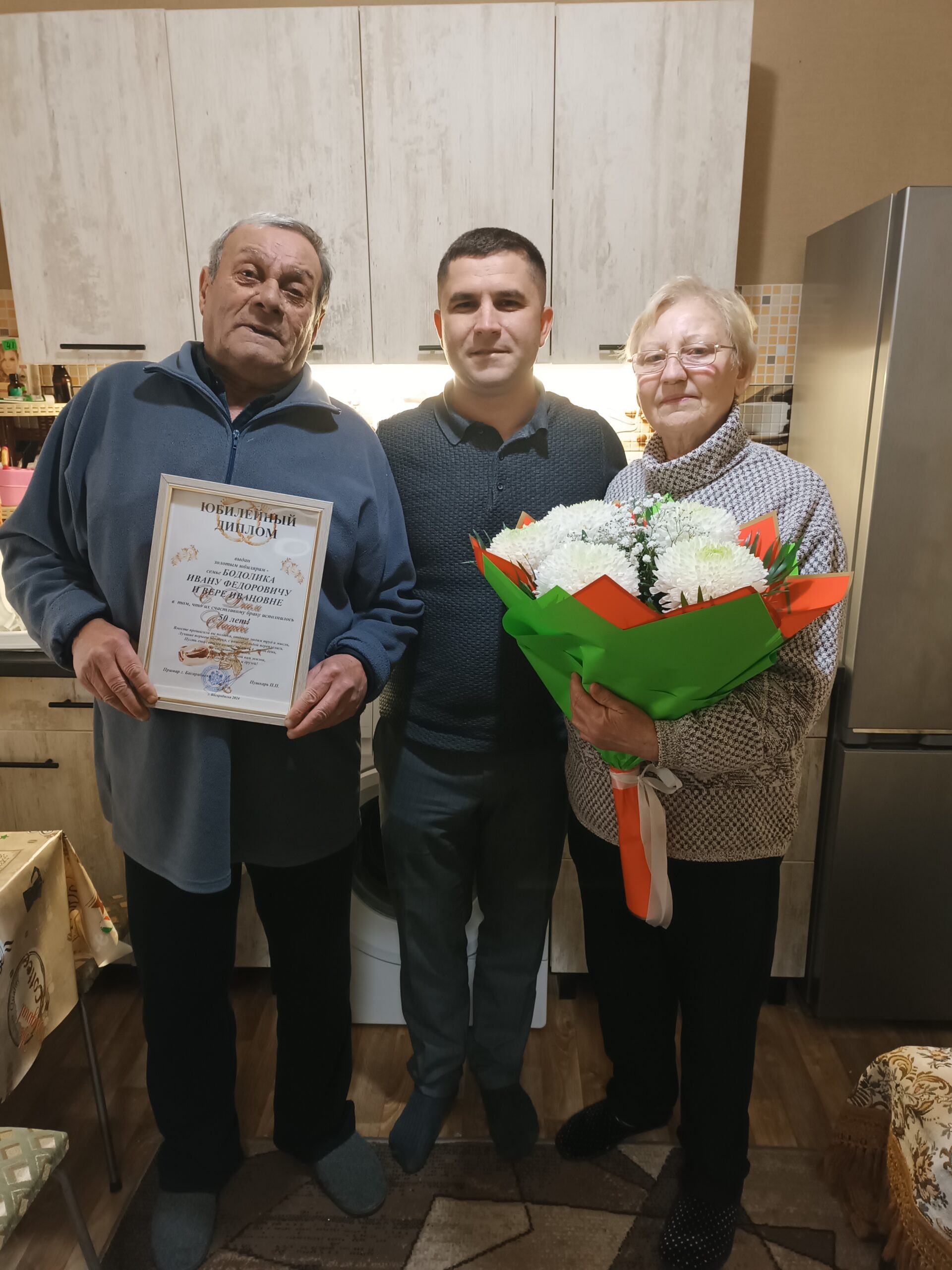 Примар города Басарабяска, Пушкарь Петр Петрович поздравил сегодня две пары золотых юбиляров: Бодолика Ивана Федорович и Веру Ивановну, Пенцак Владимира Михайловича и Валентину Васильевну с самой значимой годовщиной семейной жизни – золотой свадьбой!